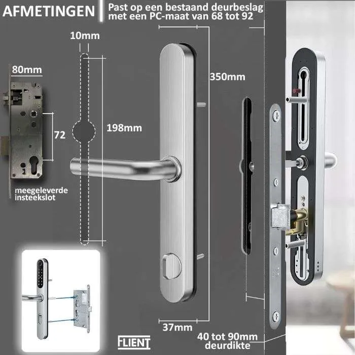 Dankzij verstelbare PC maat ( afstand tussen klink en cilinder gat) geschikt voor zowel 72mm als 92mm